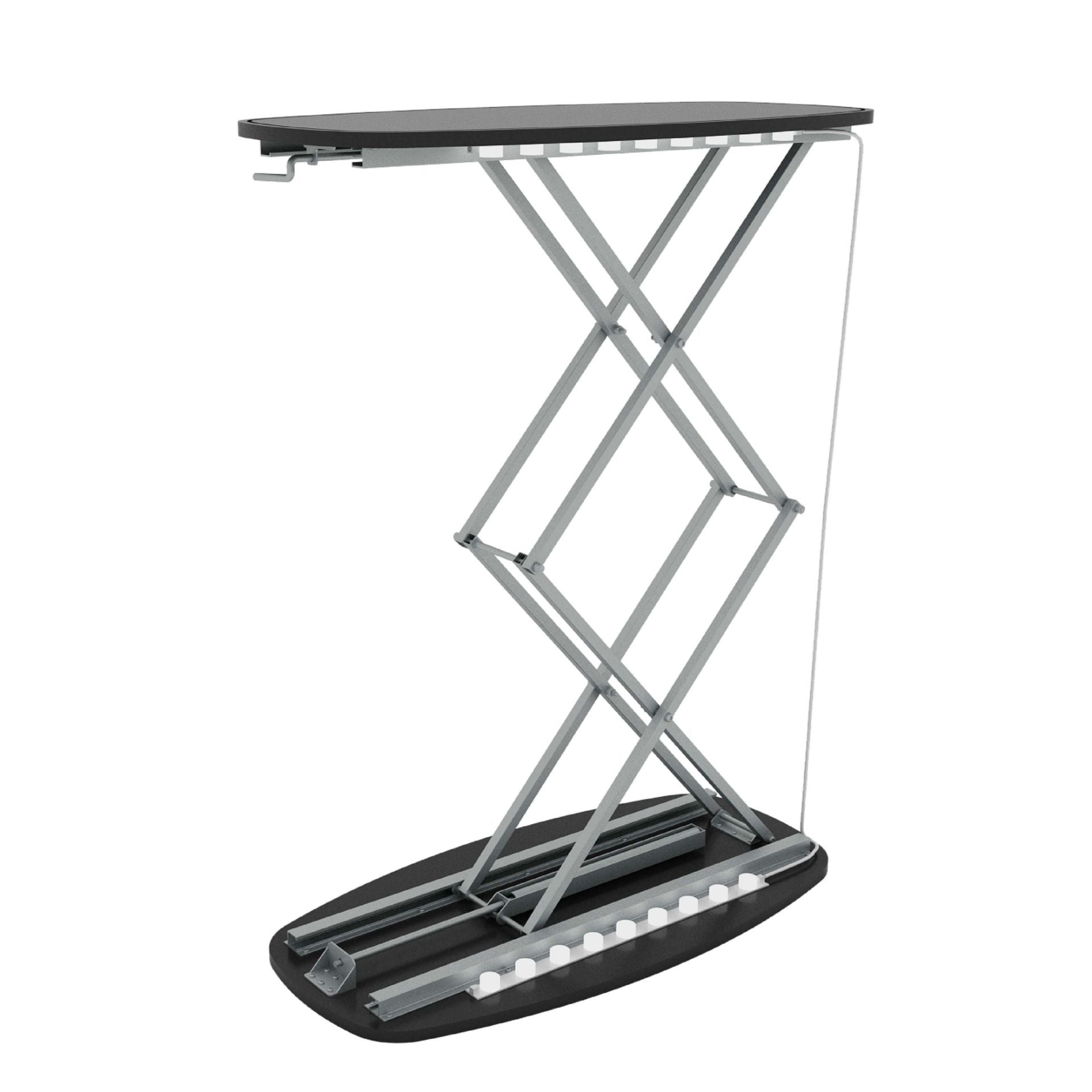 | Material | Steel scissor lift, aluminium mounting bracket, MDF tabletop/base |
