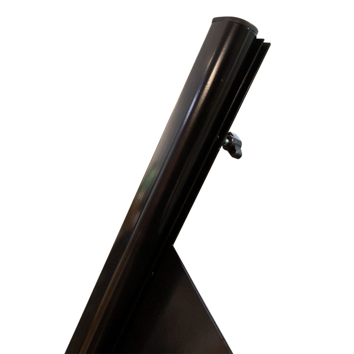 The recessed graphic holder is designed to fit rigid A3 or A4 signs made from waterproof materials like Foamex, PVC, or Dibond, with a thickness between 3 mm and 5 mm. Graphics slide into place and are secured quickly and easily using the built-in thumb screw—no tools or adhesives needed.