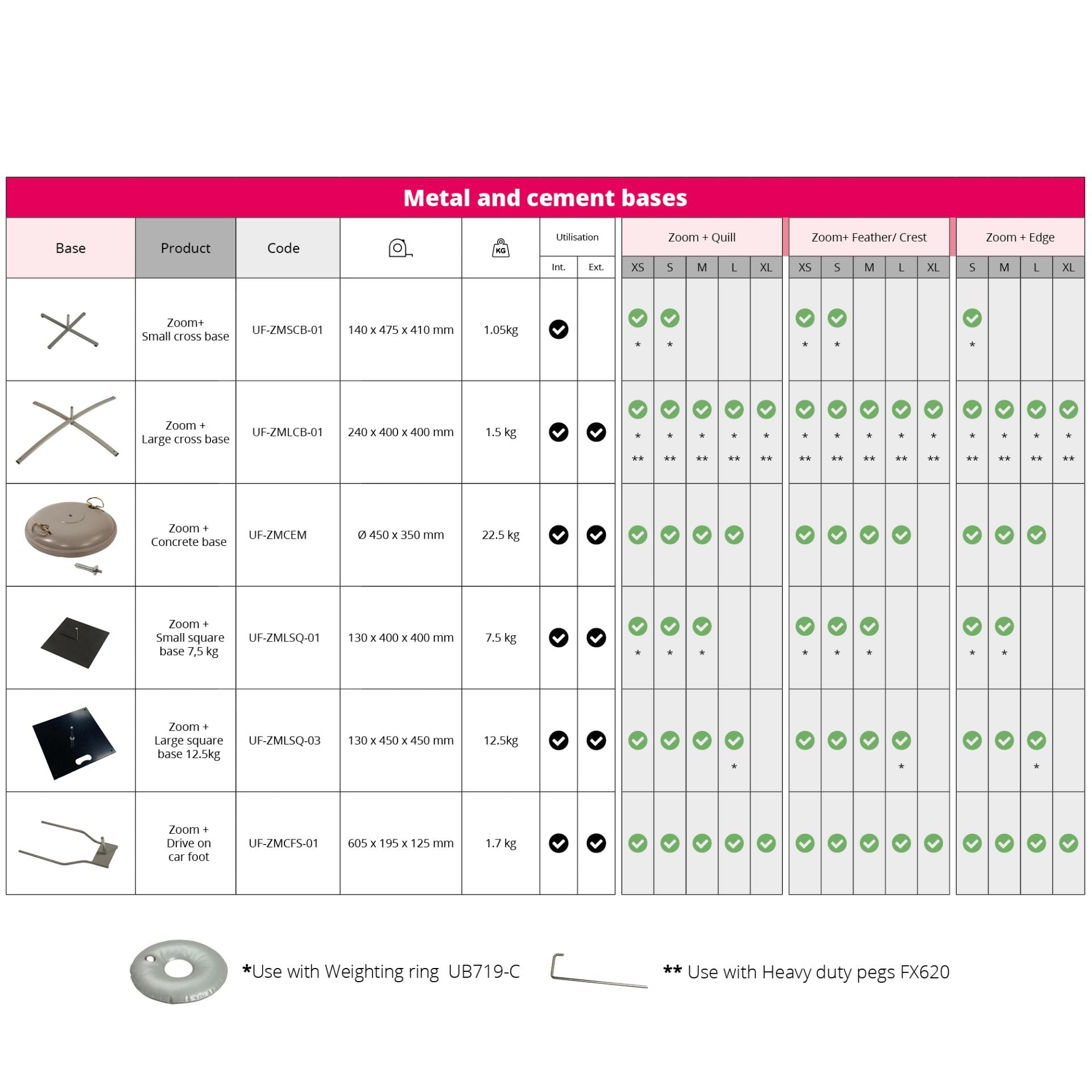 To ensure optimal performance and stability, please consult the compatibility chart in the image carousel or in the Features Tab to determine the most suitable base for your flag size.